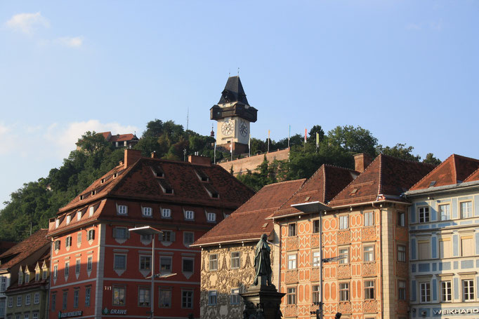 und auf der anderen Seite das moderne Kunsthaus, von seinen Architekten "Friendly Alien" genannt. Nach einer Stadtführung ist der Besuch des Schlossberges ein Muss. Von dort hat man einen